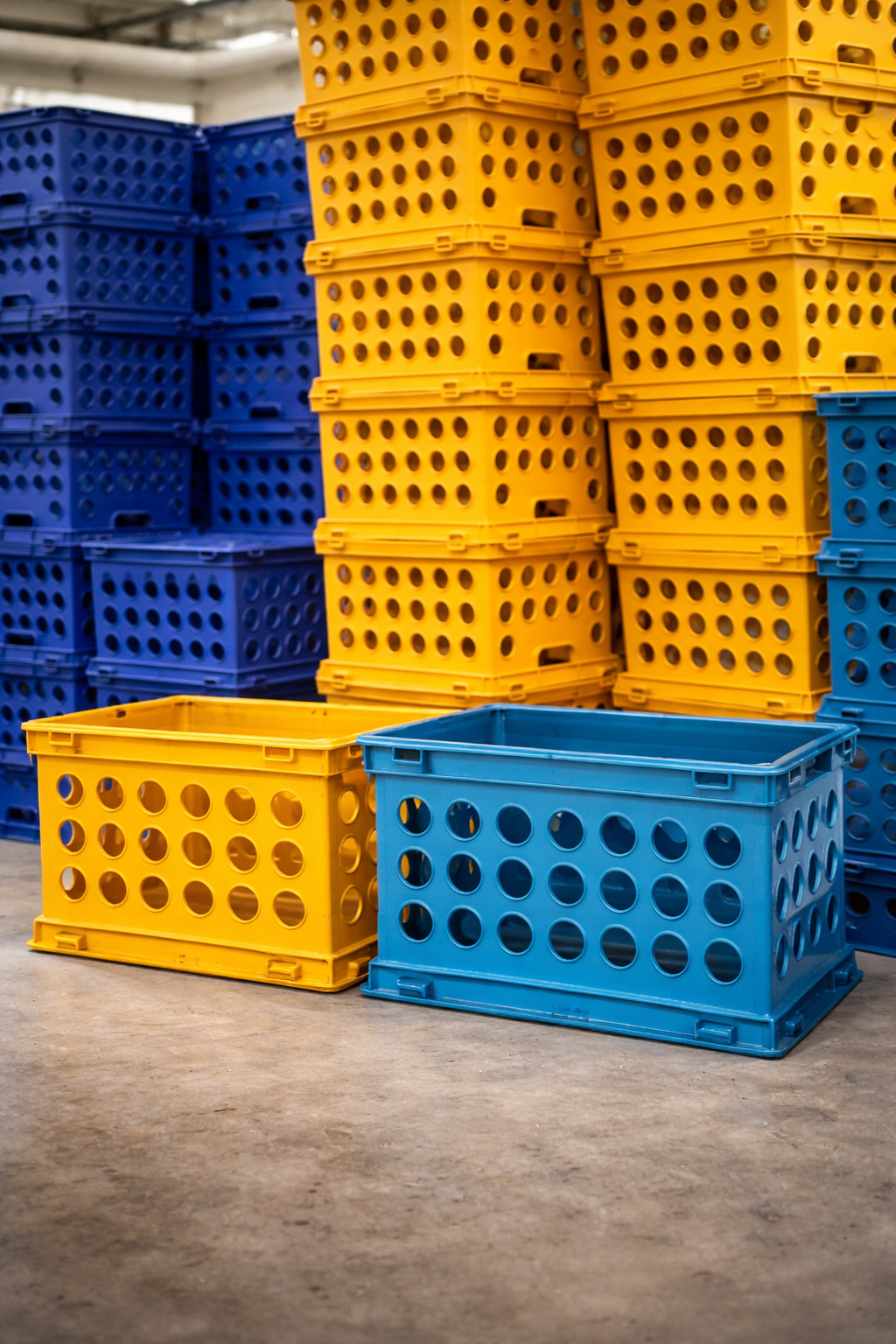The Farm Crate is a strong, multipurpose plastic crate designed for agricultural, commercial, and household storage needs. Built with a perforated (ventilated) design, it allows proper air circulation, making it ideal for storing and transporting fruits, vegetables, farm produce, bottled drinks, and general goods.